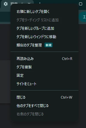 この機能では、タブを右クリックすることで、類似したタブを「タブグループ」としてまとめることができます。