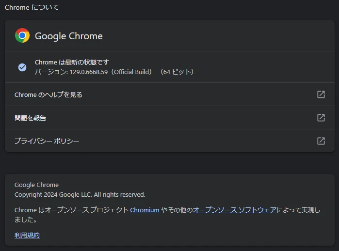 現在、この機能は試験運用されているものであり、正式版(バージョン:バージョン: 129.0.6668.59(Official Build) (64 ビット))では利用できません。