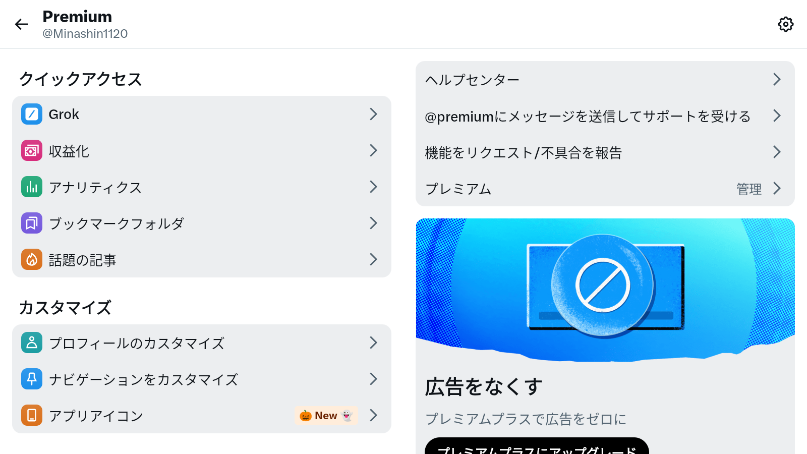 X Premium加入ユーザーは、プラットフォームを問わず、プレミアム機能の一覧を表示・利用できる専用のプレミアムタブを利用できます。