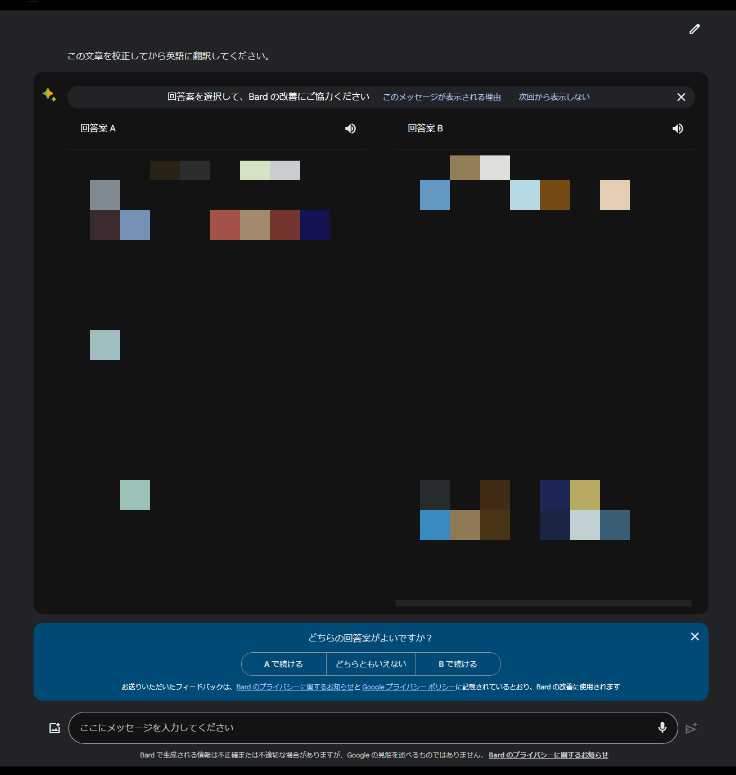 しかし、今回の更新により、2つの回答案を並べて表示されるようになりました。この場合、ユーザーは希望する回答案を選択してフィードバックとして送信することができます。